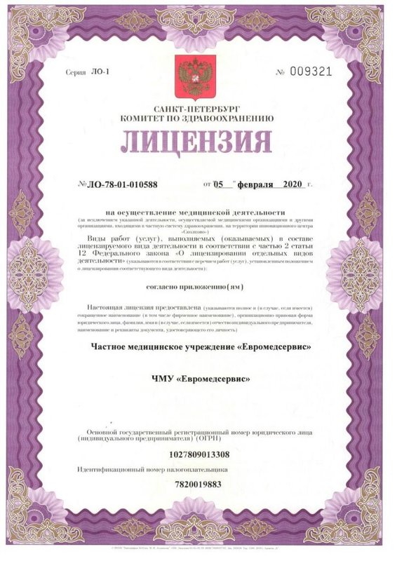 Медицинский центр Евромедсервис - это многопрофильное медицинское учреждение, предлагающее индивидуальный комплекс процедур и услуг для каждого клиента. В клинике всё организовано с учетом комфортного пребывания посетителей. Новейшее оборудование центра помогает провести диагностику организма пациента для составления плана лечения и профилактики. В клинике функционируют отделения общей терапии, кардиологии, ревматологии, гастроэнтерологии, пульмонологии, неврологии, эндокринологии, дерматологии, урологии, колопроктологии, гинекологии, маммологии, онкологии, психотерапии, офтальмологии. Наши врачи имеют высокую квалификацию и внимательно отнесутся к каждой вашей просьбе. Доверяя заботу о своем здоровье нам, вы можете не сомневаться в положительном результате.